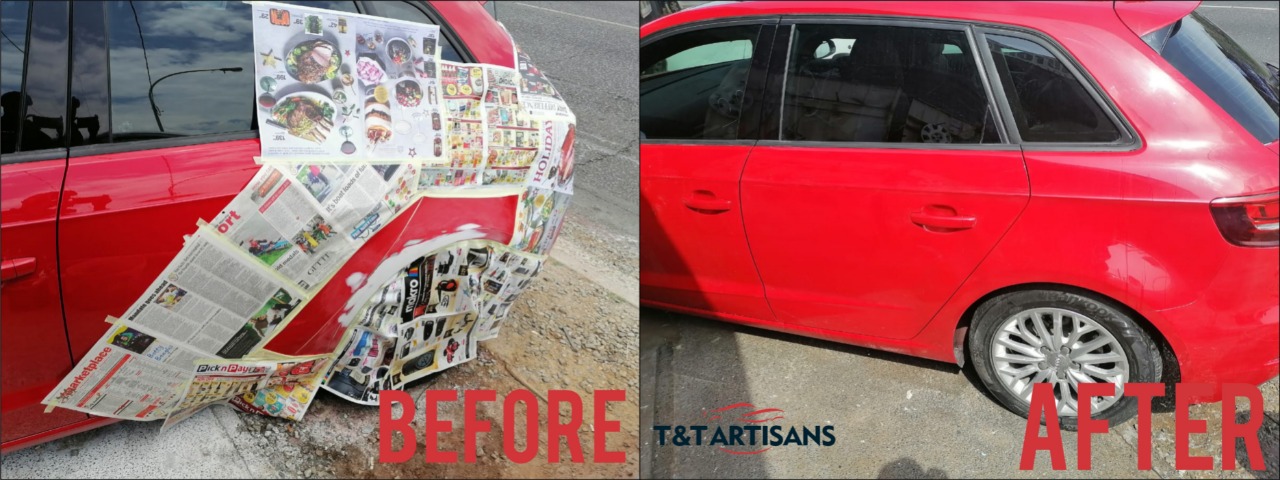 The action of beating the bodywork of motor vehicles into shape. Panel beating happens when a vehicle experienced collision or crash. It involves installing hardware such as locks and sensors